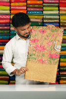 Kota Silk Floral Digital Print With Mirror Work Kanchi Border Dark Tan Saree
