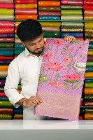 Kota Silk Floral Digital Print With Mirror Work Kanchi Border Violet Saree
