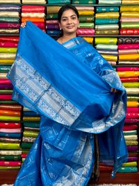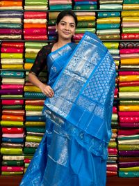 Kuppadam Pattu Checks And Butti Coppersulphate Blue Saree