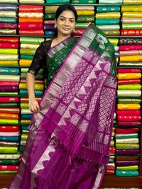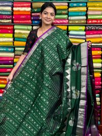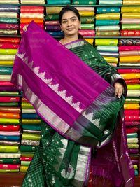 Kuppadam Pattu Checks And Butti Dark Green With Pink Saree