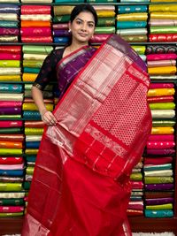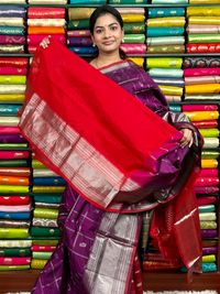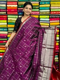 Kuppadam Pattu Checks And Butti Magenta Pink With Red Saree
