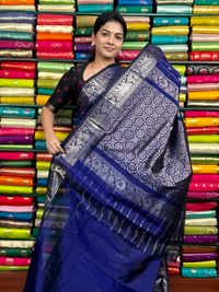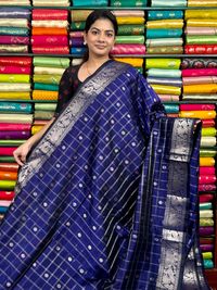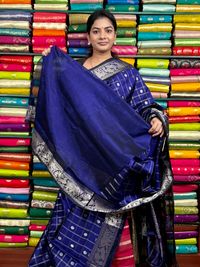 Kuppadam Pattu Checks And Butti Navy Blue Saree