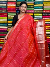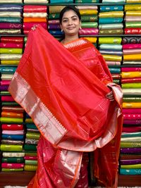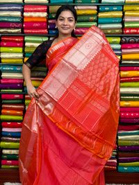 Kuppadam Pattu Checks And Butti Peach Pink Saree