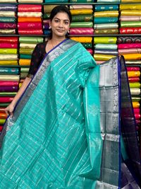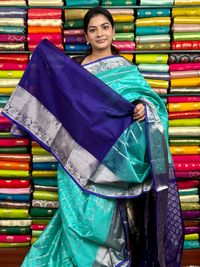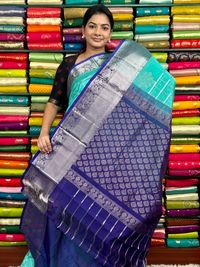 Kuppadam Pattu Checks And Butti Sea Green With Purple Saree