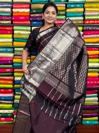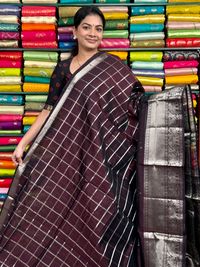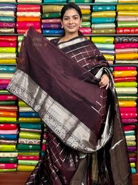 Kuppadam Pattu Checks Chocolate Brown Saree
