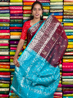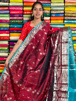 Kuppadam Pattu Gold Zari And Butti Brown With Sea Green Saree