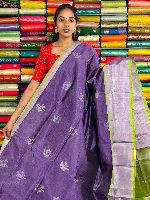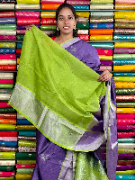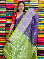 Kuppadam Pattu Gold Zari And Butti Lavender With Parrot Green Saree