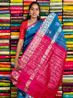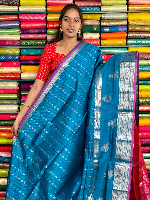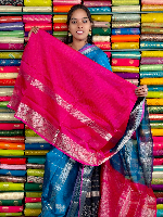 Kuppadam Pattu Gold Zari And Butti Peacock Blue With Pink Saree