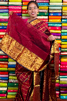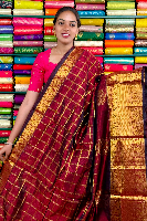 Kuppadam Pattu Gold Zari And Check Dark Brown Saree