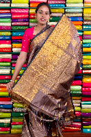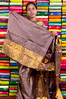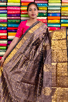 Kuppadam Pattu Gold Zari And Check Dark Snuff Saree