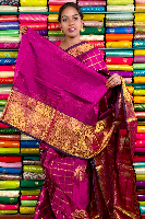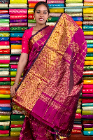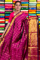 Kuppadam Pattu Gold Zari And Check Magenta Pink Saree