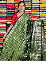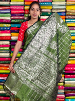 Kuppadam Pattu Gold Zari And Check Mehandi Green Saree
