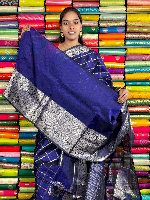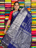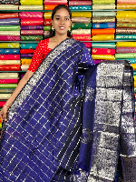 Kuppadam Pattu Gold Zari And Check Navy Blue Saree