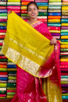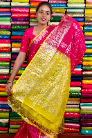 Kuppadam Pattu Gold Zari And Check Pink With Yellow Saree