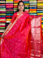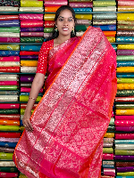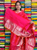Kuppadam Pattu Gold Zari And Vertical Lines Bright Pink Saree