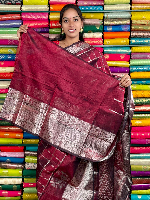 Kuppadam Pattu Gold Zari Butti And Check Chocolate Brown Saree