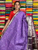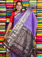Kuppadam Pattu Gold Zari Butti And Check Lavender With Brown Saree