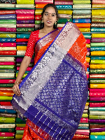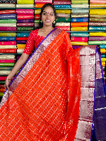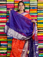 Kuppadam Pattu Gold Zari Butti And Check Orange With Purple Saree