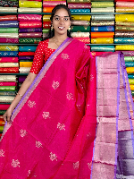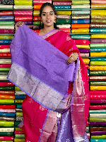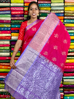 Kuppadam Pattu Gold Zari Butti Pink With Lavender Saree