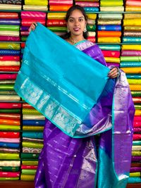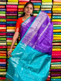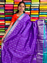 Kuppadam Pattu Gold Zari Buttti Lavender With Rama Green Saree