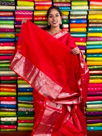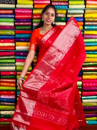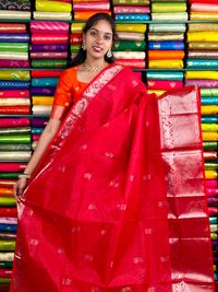 Kuppadam Pattu Gold Zari Checks And Buttti Red Saree