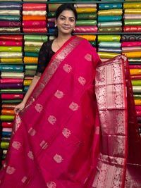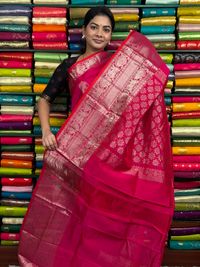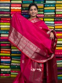 Kuppadam Pattu Peacock Butti Pink Saree
