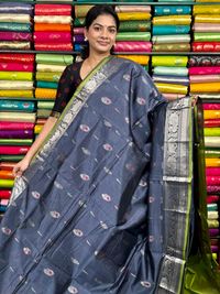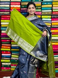 Kuppadam Pattu Zari Butti Gray With Light Green Saree