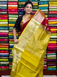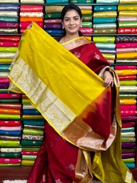 Kuppadam Pattu Zari Butti Maroon With Yellow Saree
