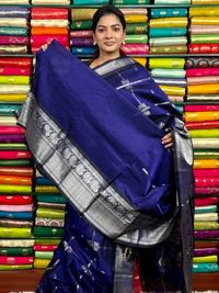 Kuppadam Pattu Zari Butti Navy Blue Saree