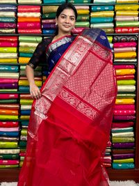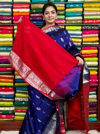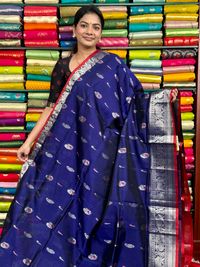 Kuppadam Pattu Zari Butti Navy Blue With Red Saree