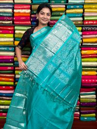 Kuppadam Pattu Zari Butti Sea Green Saree