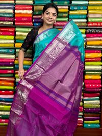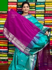 Kuppadam Pattu Zari Butti Sea Green With Pink Saree