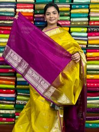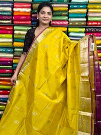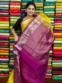 Kuppadam Pattu Zari Butti Yellow With Magenta Pink Saree