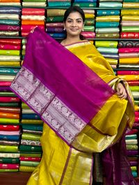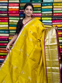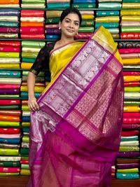 Kuppadam Pattu Zari Butti Yellow With Pink Saree