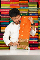 Latest Pattu Butti With Gap Border Orange With Green Saree