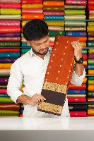 Latest Pattu Butti With Gap Border Rust Orange With Chocolate Saree