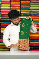 Latest Pattu Flower And Leaf Butti Dark Green With Magenta Pink Saree