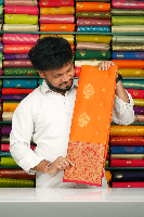 Latest Pattu Flower Butti Orange With Pink Saree