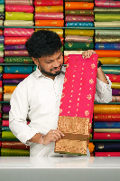 Latest Pattu Leaf Butti Gap Border Bright Pink With Green Saree