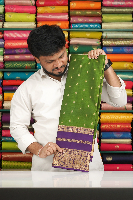 Latest Pattu With Butti Mehandi Green With Purple Saree
