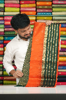 Latest Pattu With Gap Border Bright Orange With Green Saree