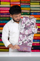 Lenin Cotton Digital Print Half White With Dusky Saree