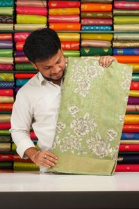 Lenin Silk Full Jal Floral Digital Print Green Saree