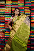 Light Weight Kanchi Pattu Gray And Green Saree