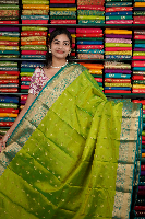 Light Weight Kanchi Pattu ParrotGreen And Rama Green Saree
