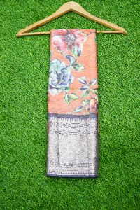 Light Weight Printed Pattu Light Orange And Gray Saree