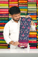 Linen Cotton Ajrakh Print Navy Blue With Magenta Pink Saree