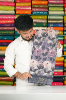 Linen Cotton Floral Digital Printed Dark Lavender With Dark Purple Saree