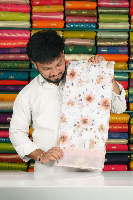 Linen Cotton Floral Digital Printed White With Peach Saree
