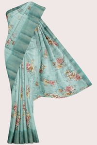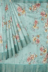 Linen Silk Digital Printed Dark Rama Green Saree